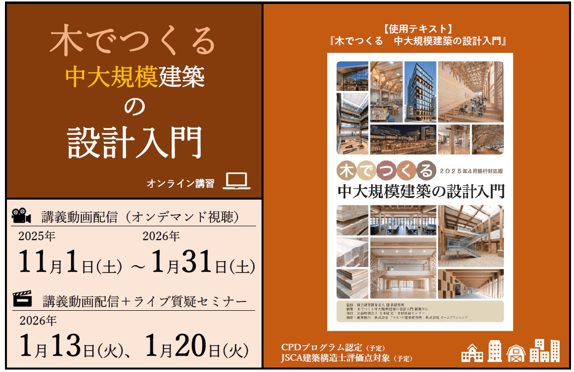 - 『木でつくる 中大規模建築の設計入門』講習会(意匠設計者向け)