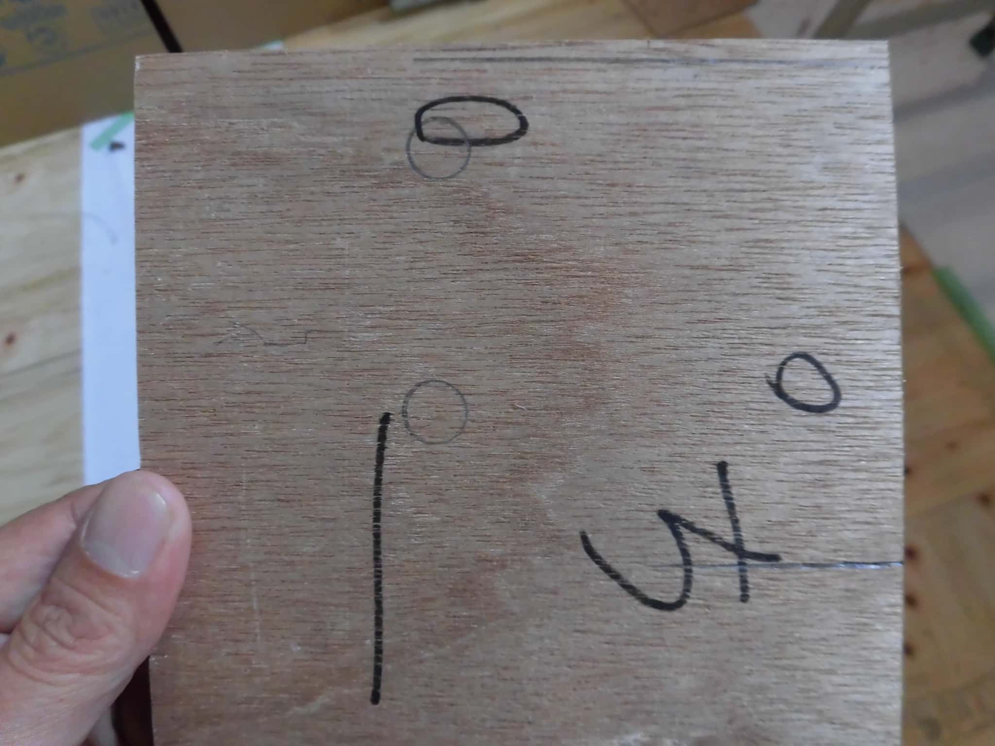 生けどりするのは梁の小口の傾きと、取り付けた金物のドリフトピンの穴の位置です。梁の長さは天端で測っていますので、この型板の右上部分を天端の基点に合わせて、その反対側の小口の型板を計測した長さで裁断すれば、きっちりとした長さで加工ができるわけですが、例えば、長さが3096mmだからといって3096mmで長さを切りますと、現場で梁を納めるときに「入らない」のですw