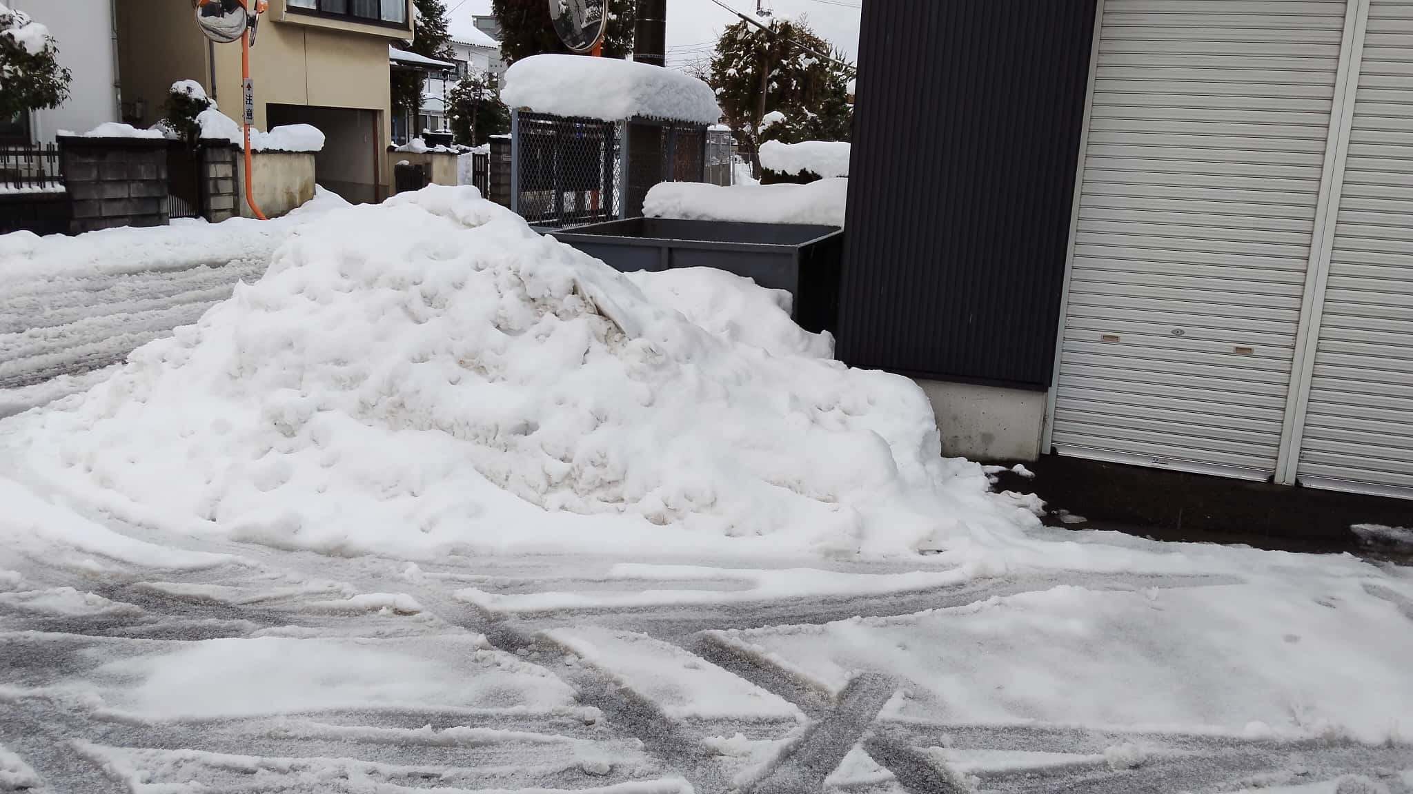 除雪と一口でいっても、重要なのは「雪置場」なのです。この「雪置場」がないと、道路もそうですが除雪は一向に進みません。弊社の駐車場の場合は両側に寄せるような措置をとって開けました。