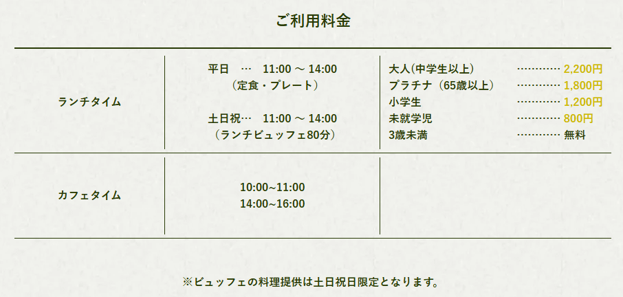 この施設に併設されている「自然派レストランビュッフェ・こまつせせらぎ」は、土日祝のみランチブッフェをしています。