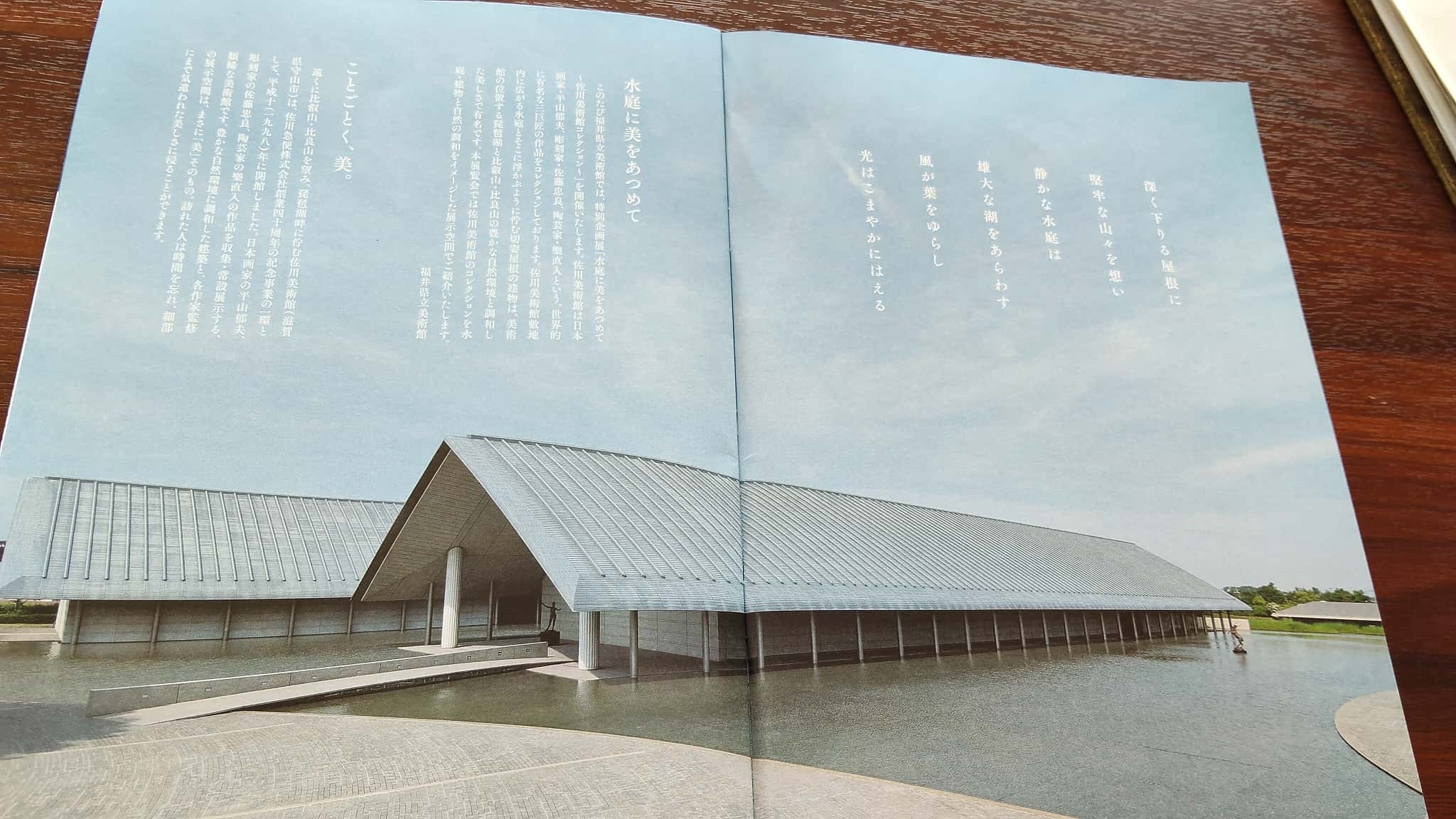 佐川美術館では「日本画家・平山郁夫」、「彫刻家・佐藤忠良」、「陶芸家・樂直入」の三人の巨匠の作品が展示されていますが、そのままが福井に来た!という感じです。もちろん展示の撮影はNGですので画像をアップすることはできませんが、無料で佐川美術館のパンフレットを配布していましたので、そちらをアップしますw