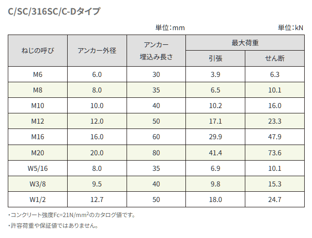 M12のオールアンカーで、50mmの埋め込み長さで、引張は17.1kNですので、規定値より十分に大きな性能であることがわかります。ただし、これは「埋め込み長さ」によりますので、土間コンクリートをケチって薄くしあげて50mmなかった場合は「不良施工」となります。