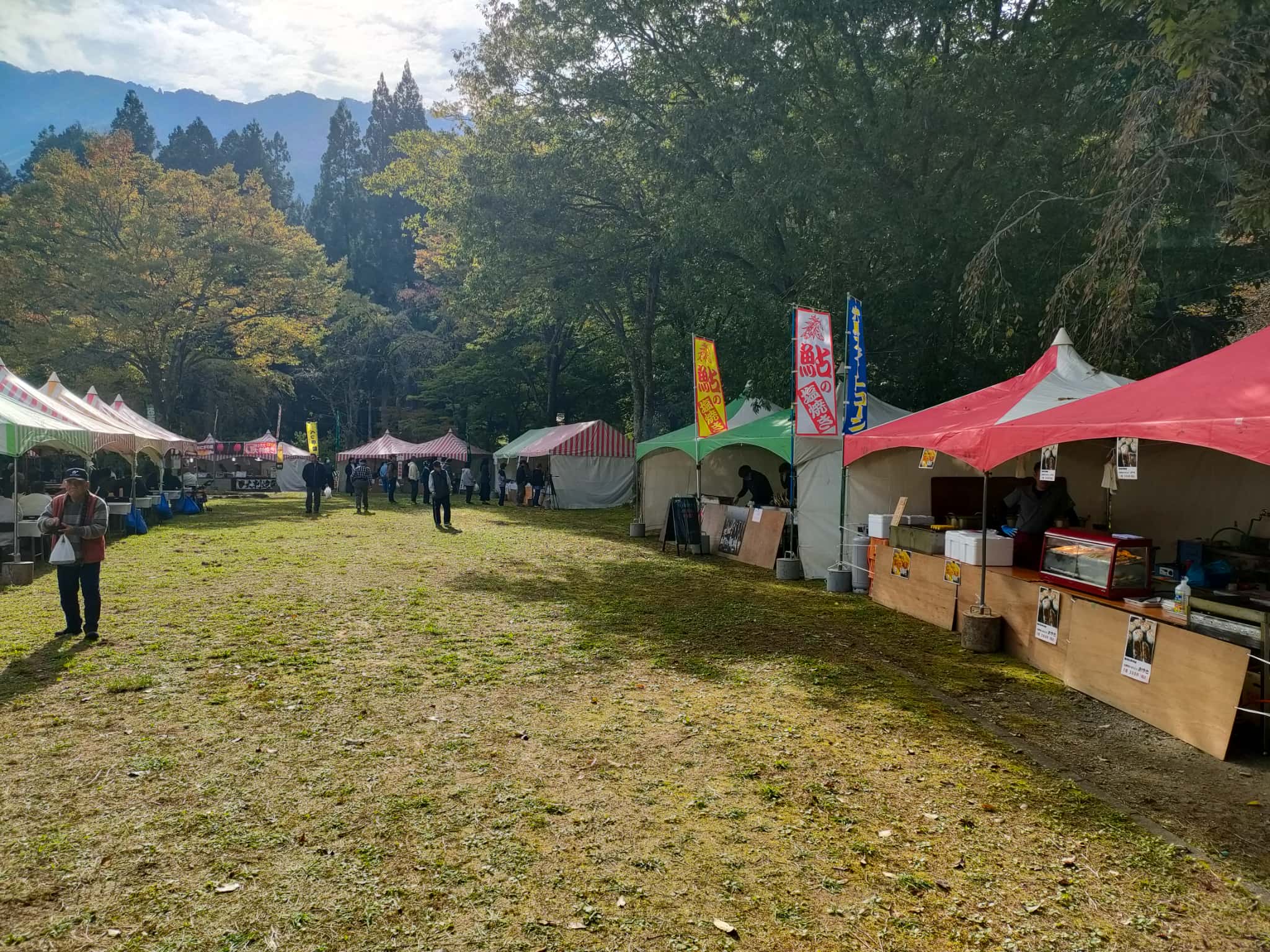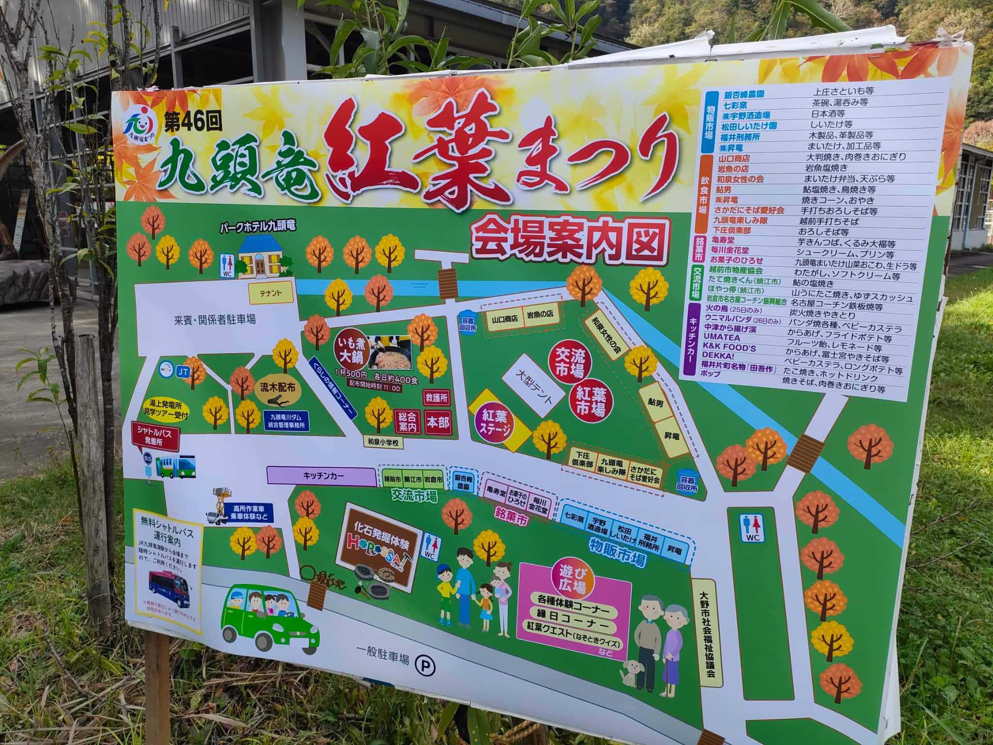 「九頭竜紅葉まつり」は「九頭竜スキー場」周辺を使って開催されるのですが、アクセスは「国道158号線」のみの山間部です。中部縦貫道の無料区間もあり、かなりアクセスが楽になったこともあって、岐阜、名古屋などの中京方面からの車を非常にたくさんありました。