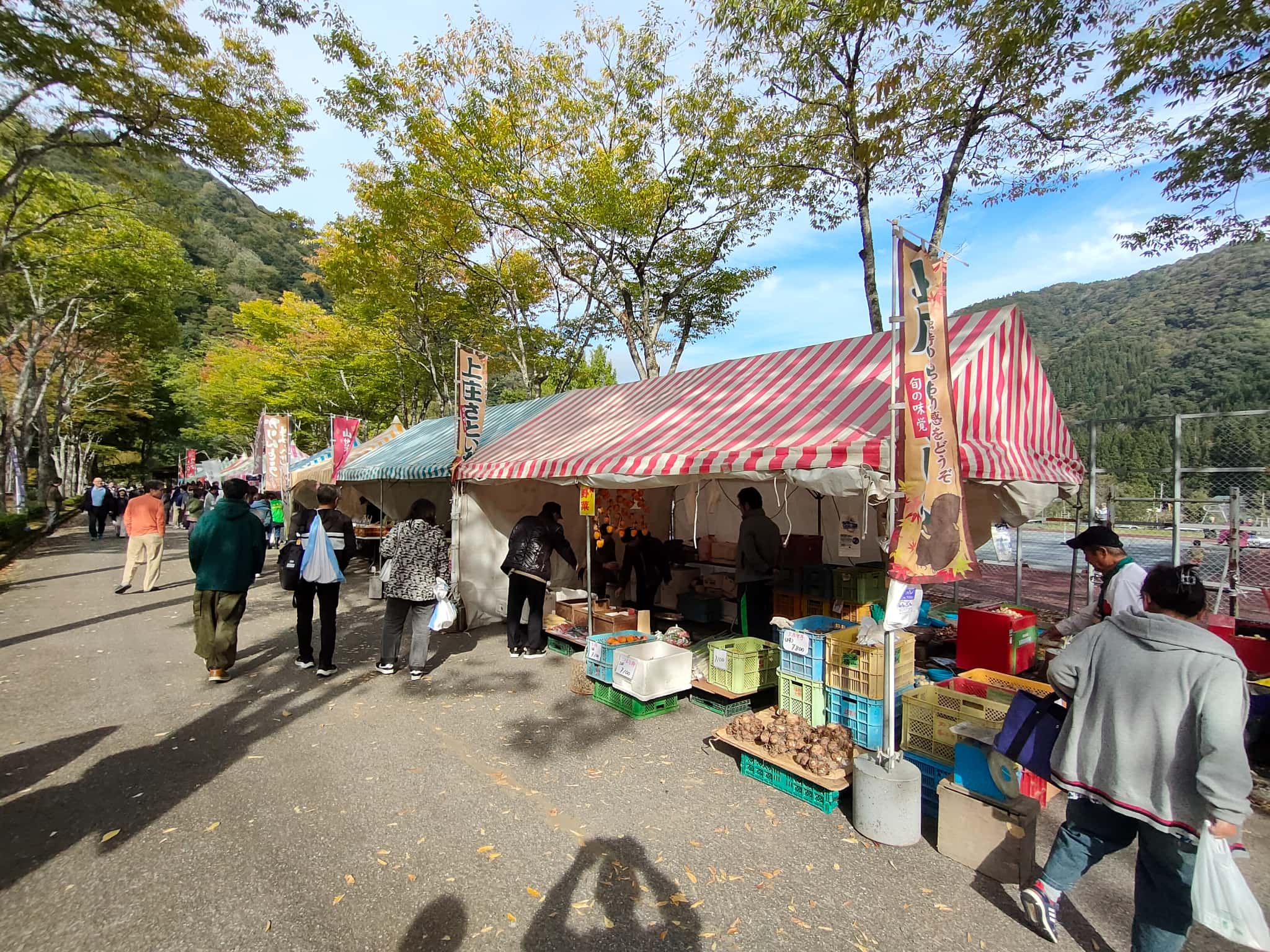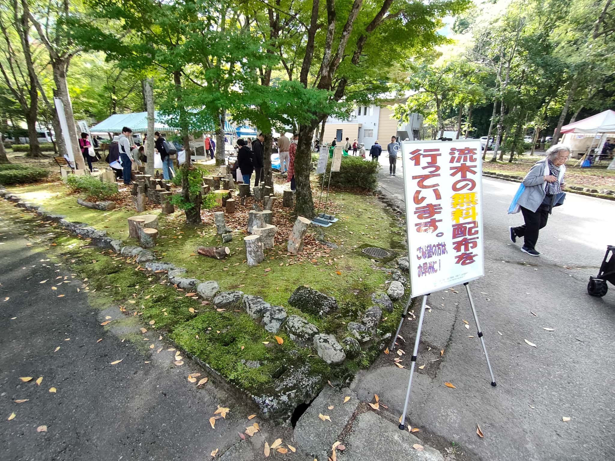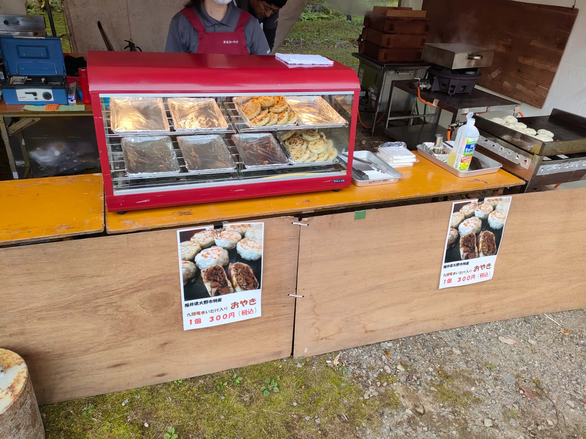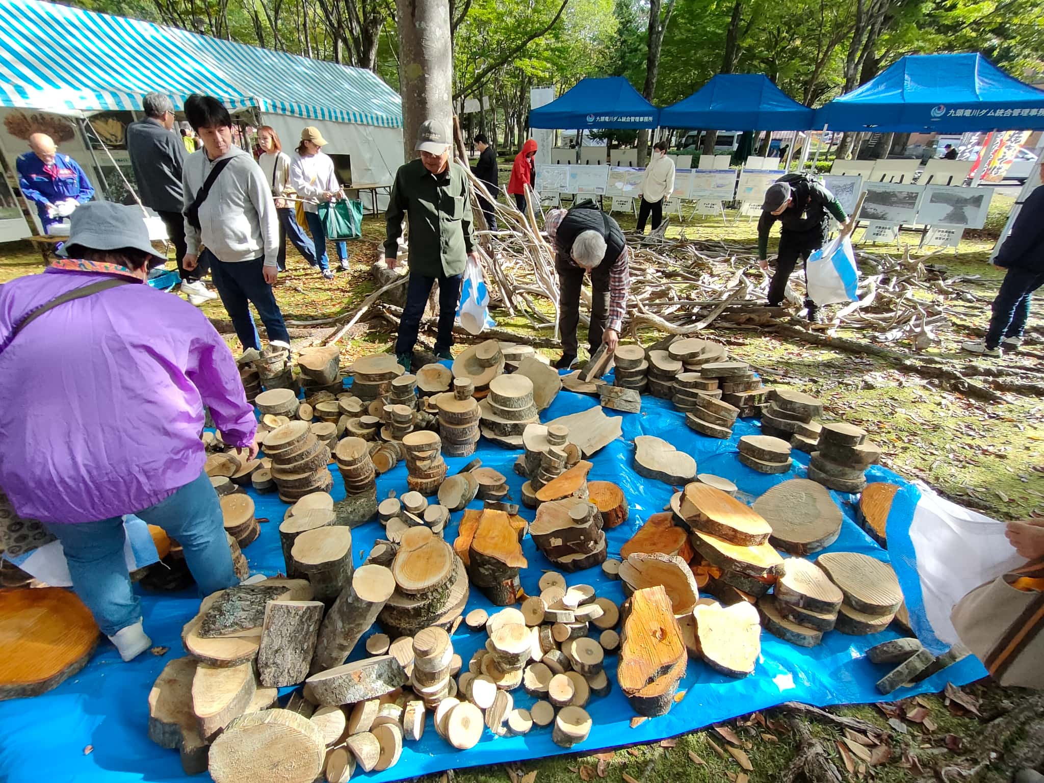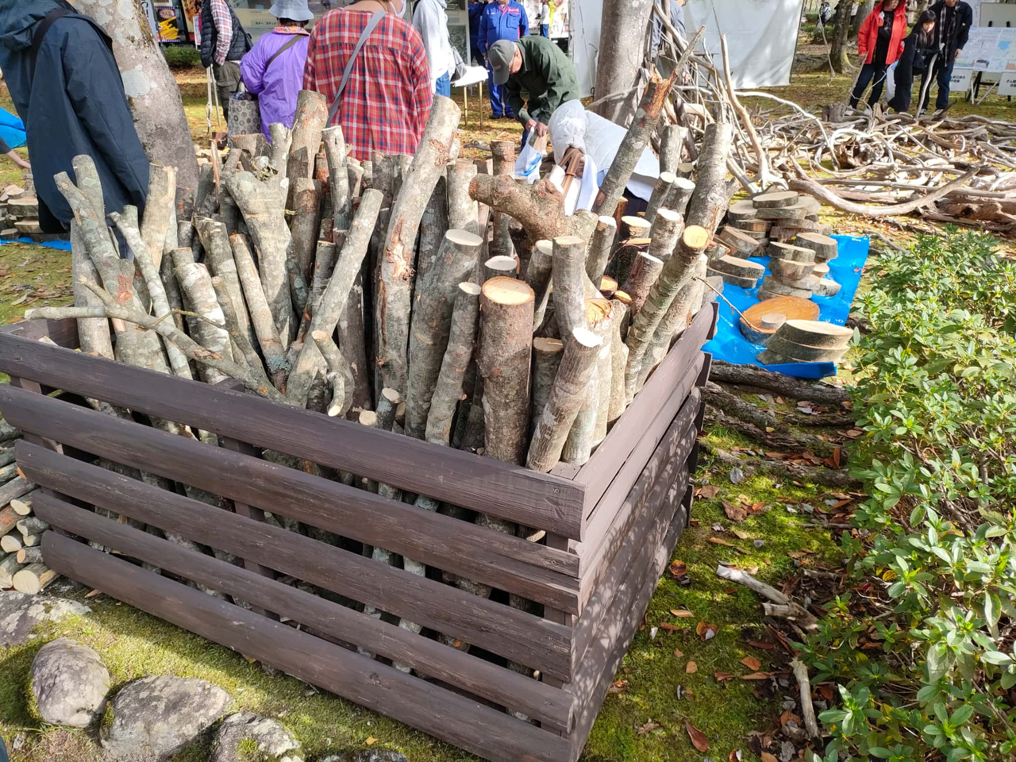 この「九頭竜紅葉まつり」は、大野や奥越周辺の名産品の販売や、地元農産物を使ったグルメの販売などを行いますが、それだけではなく、現在進行中の交通インフラの工事に関する展示や、九頭竜川流域に流れ着く「流木」の配布なども行います。意外と知る人は知る的なイベントで、かなりの観光客が来るイベントです。