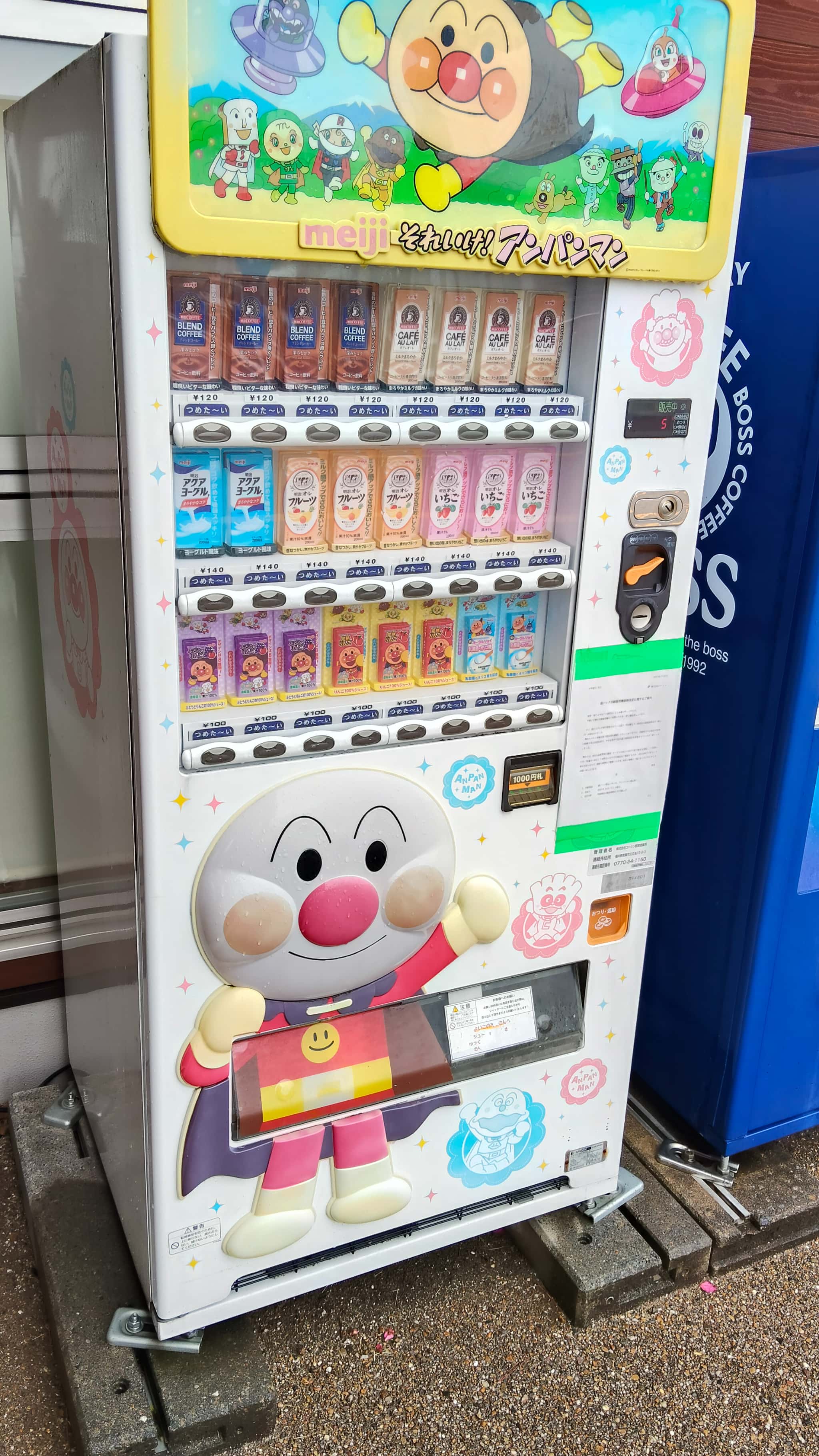顔色の悪いアンパンマンなのですw この自販機ですが、子供連れでお客さんはなぜだかこのアンパンマンの自動販売機を利用してる率が高い気がしますwww 人気があるんでしょうか?w