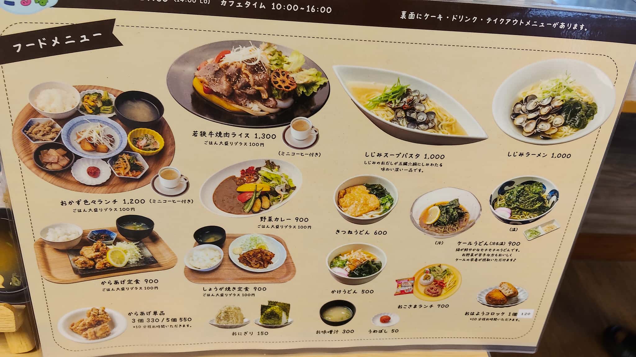 ご当地食材を使ったメニューが多いのですが、施設と近接している三方五湖の久々子湖では「しじみ漁」が盛んで、産地になってます。また、若狭牛やケールなどの嶺南で生産される畜産物、農産物なども食材として利用されています。