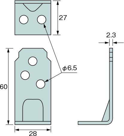 この金物の特徴は、なんといっても、幅・奥行が非常に小さい(コンパクト)であるということです。30mmを下回っているということが重要で、真壁造りという柱が見えている壁の形態の場合、筋交いが取り付いて、残る柱の部分は、60mm程度しかありませんので、壁の仕上げのチリを15mm程度考慮すると、45mm以内で下地のボードや胴縁などを納めねばなりませんので、柱に取り付く金物の幅はできるだけ小さいほうがよいです。