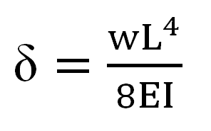 この式で、wというのは荷重の大きさです。Lは、その材の長さになります。同じ材の長さで同じ荷重がかかったとすると、この両者の間には、5/384と1/8だけの差が発生します。