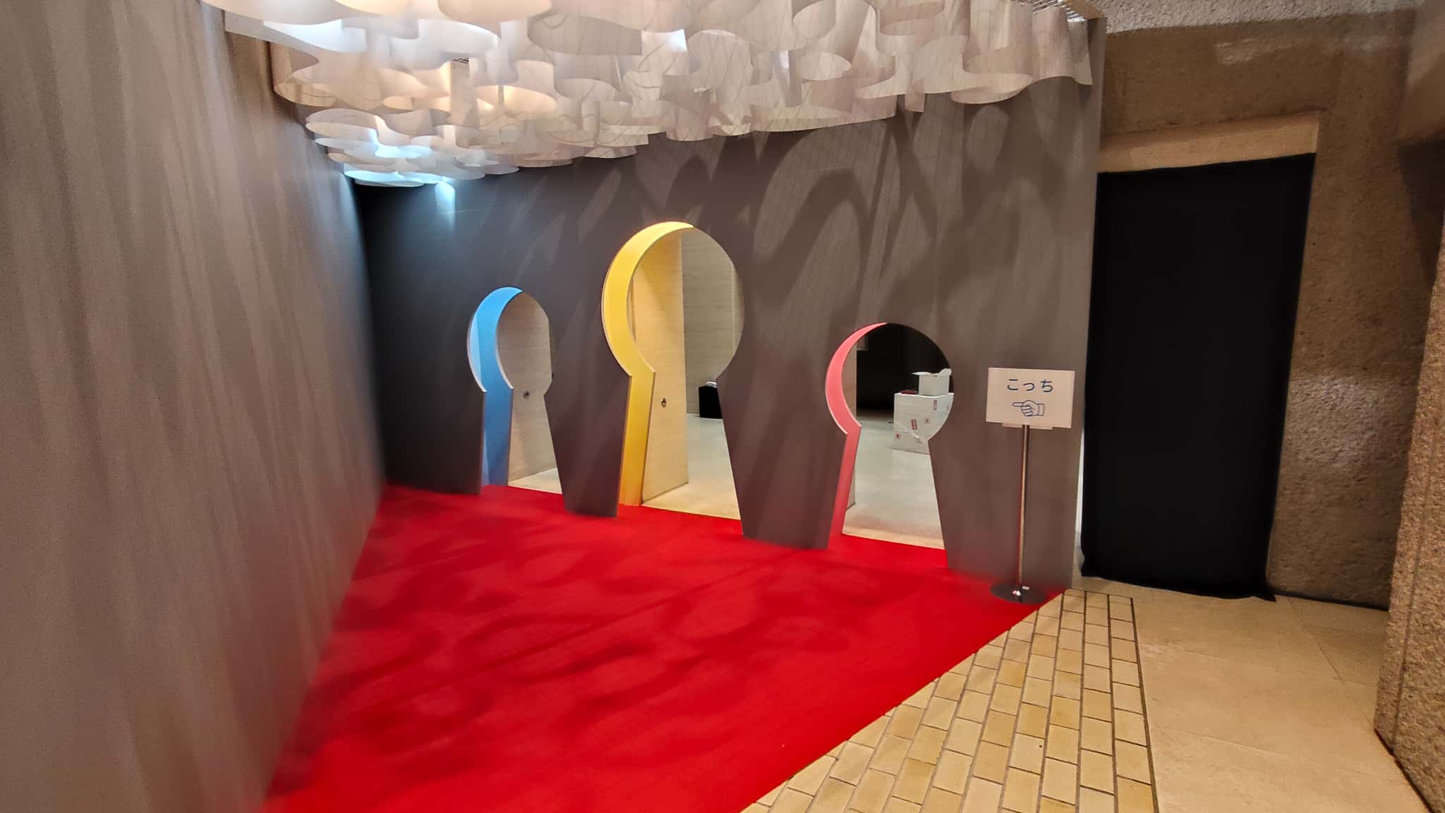 撮影は展示物も原則OKなんですが、作品の一部は撮影禁止になっています。エントランスでは記念撮影もできるモニュメントもあるんですが、それよりも会場入り口の「鍵穴」を見ますと、もはやワクワク感しかありませんw