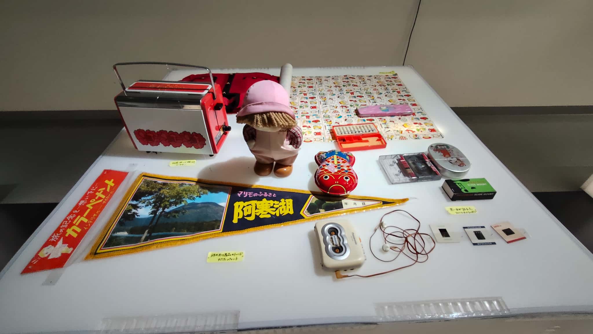 一風変わった展示もあります。なんと、県立歴史博物館の「昭和のくらし」のところに居たはずの「犬」がここにいたようですw その他、県内の企業マスコットを含めたキャラクターも盗ってこられてますw