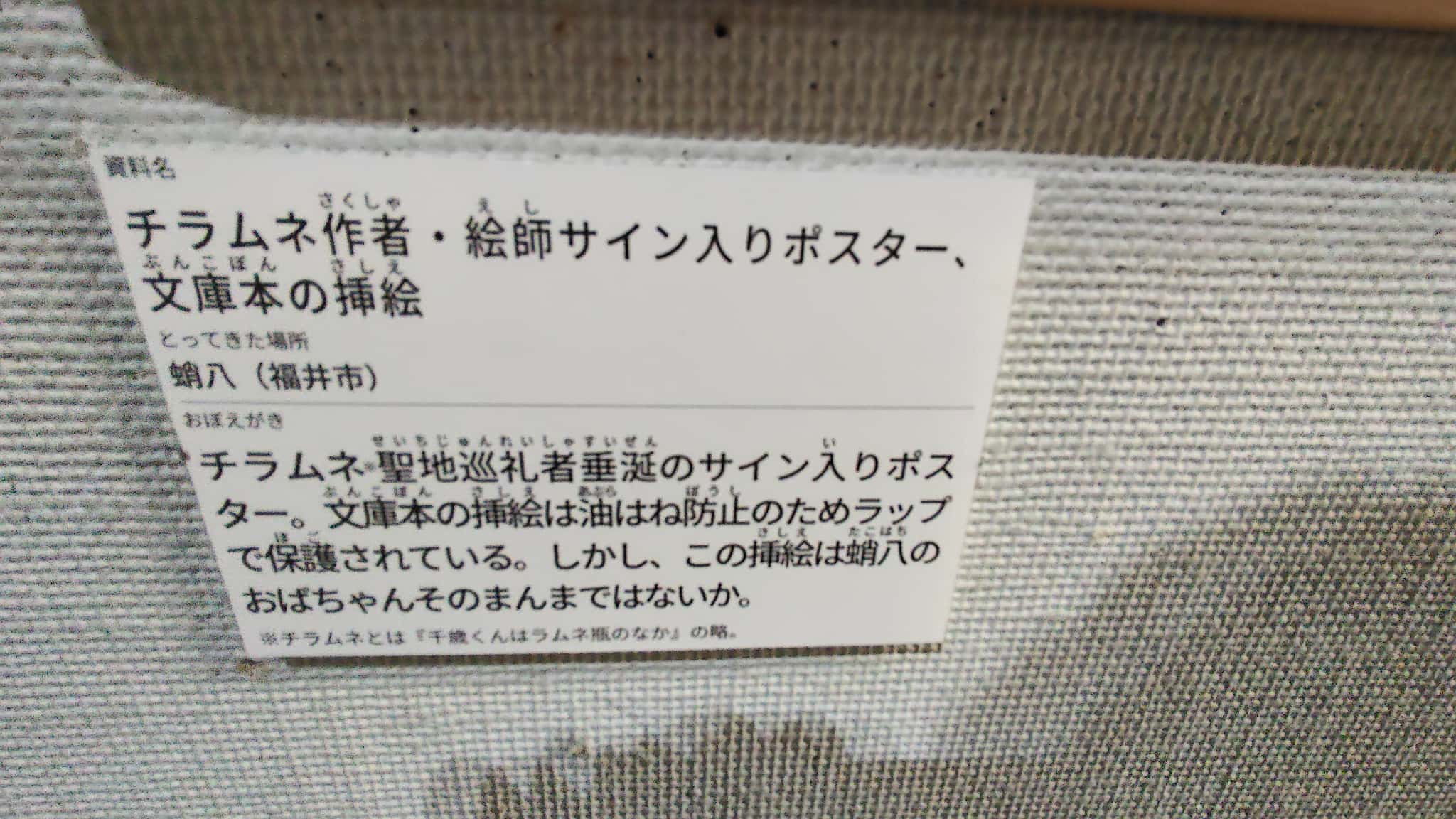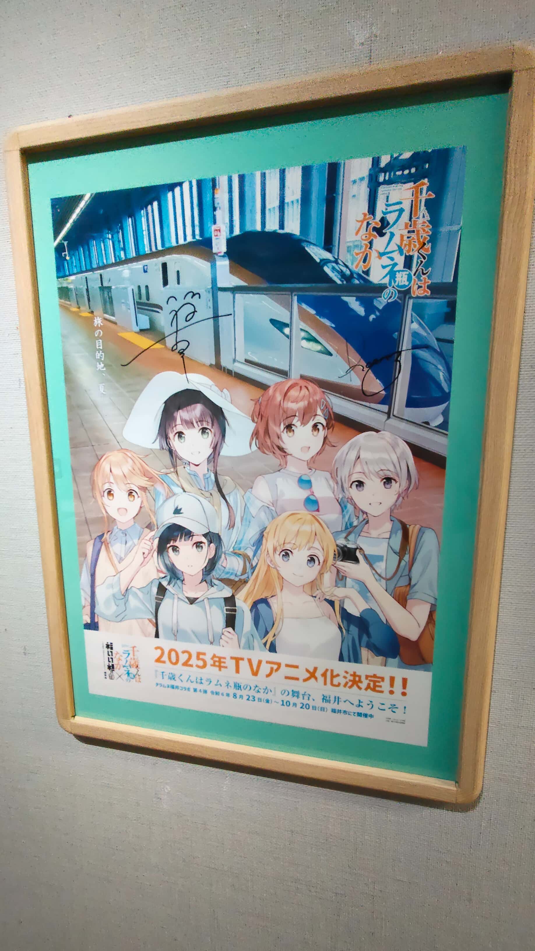 これ、「蛸八」さんのところにあった、チラムネ(千歳くんはラムネ瓶のなか)の作者さん、絵師さんのサイン入りポスターです。盗られてましたwww 大どろぼうの家の展示が、地元のちょっとしたモノを対象としてるってのが企画として素晴らしいなと思いました。