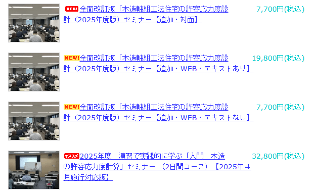セミナー 木造軸組工法住宅の許容応力度設計(2025年度版)追加セミナー